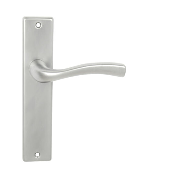 Štítová kľučka na interiérové dvere s hranatým štítom je vyrobená z hliníka a je povrchovo upravená. Kľučka neobsahuje vratný mechanizmus.