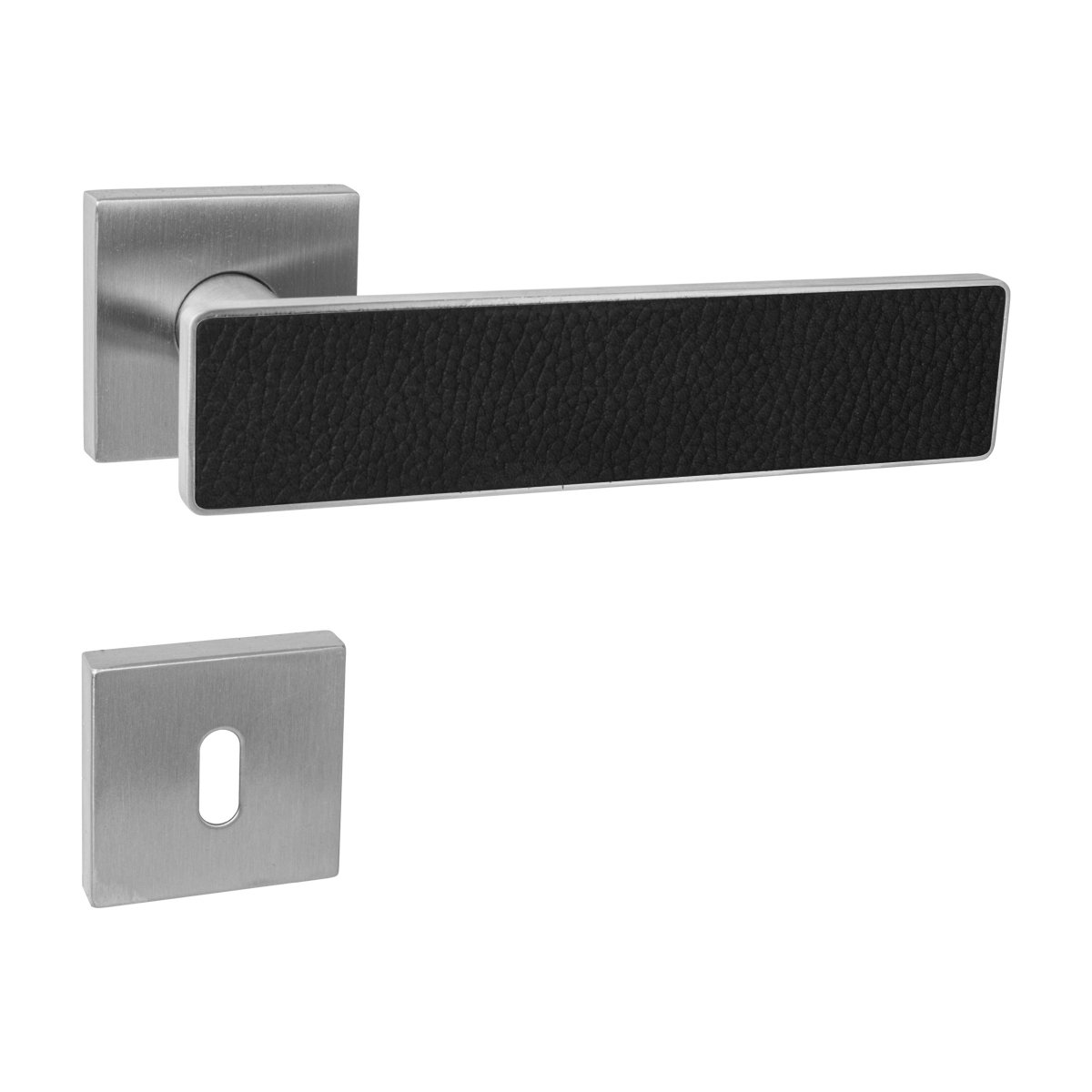 Originálna rozetová kľučka FRAME CONTOUR 436 s hranatou rozetou je vyrobená z vysokokvalitnej nehrdzavejúcej ocele s povrchovou úpravou. Špeciálny efekt vytvára prírodná koža, ktorá zdobí rukoväť kľučky. Je príjemná na dotyk a pôsobivo dotvára každý interiér.