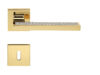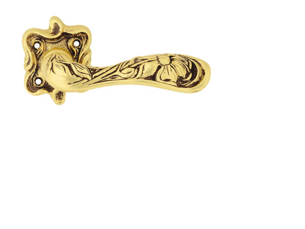 Rozetová kľučka na interiérové dvere s hranatou rozetou je vyrobená z materiálov vysokej kvality – mosadz a je povrchovo upravená.