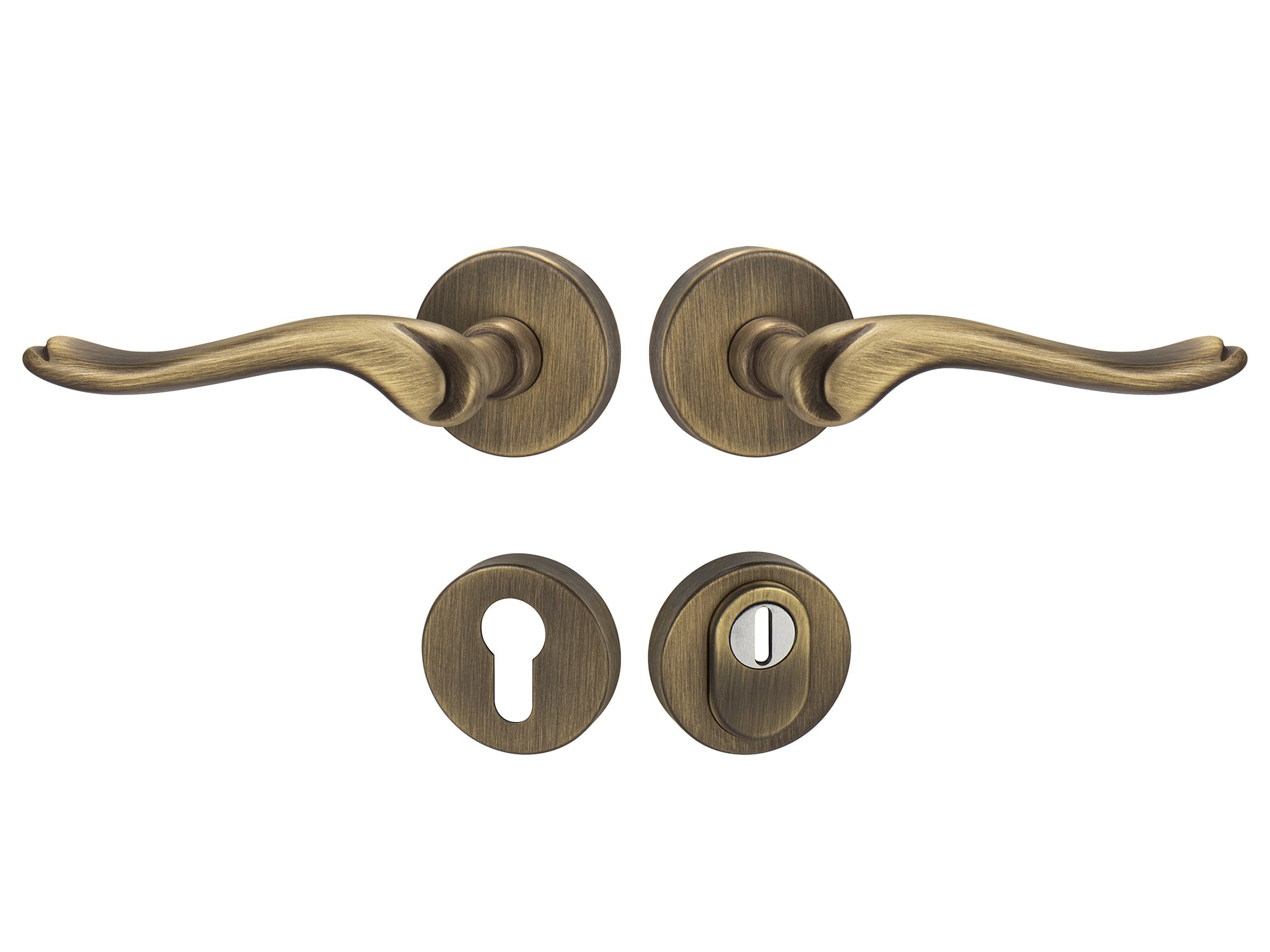 Rozetová kľučka na vchodové a bezpečnostné dvere so spevnenou okrúhlou rozetou s prekrytím cylindrickej vložky je vyrobená z materiálov vysokej kvality – mosadz a je povrchovo upravená.