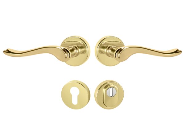 Rozetová kľučka na vchodové a bezpečnostné dvere so spevnenou okrúhlou rozetou s prekrytím cylindrickej vložky je vyrobená z materiálov vysokej kvality – mosadz a je povrchovo upravená.