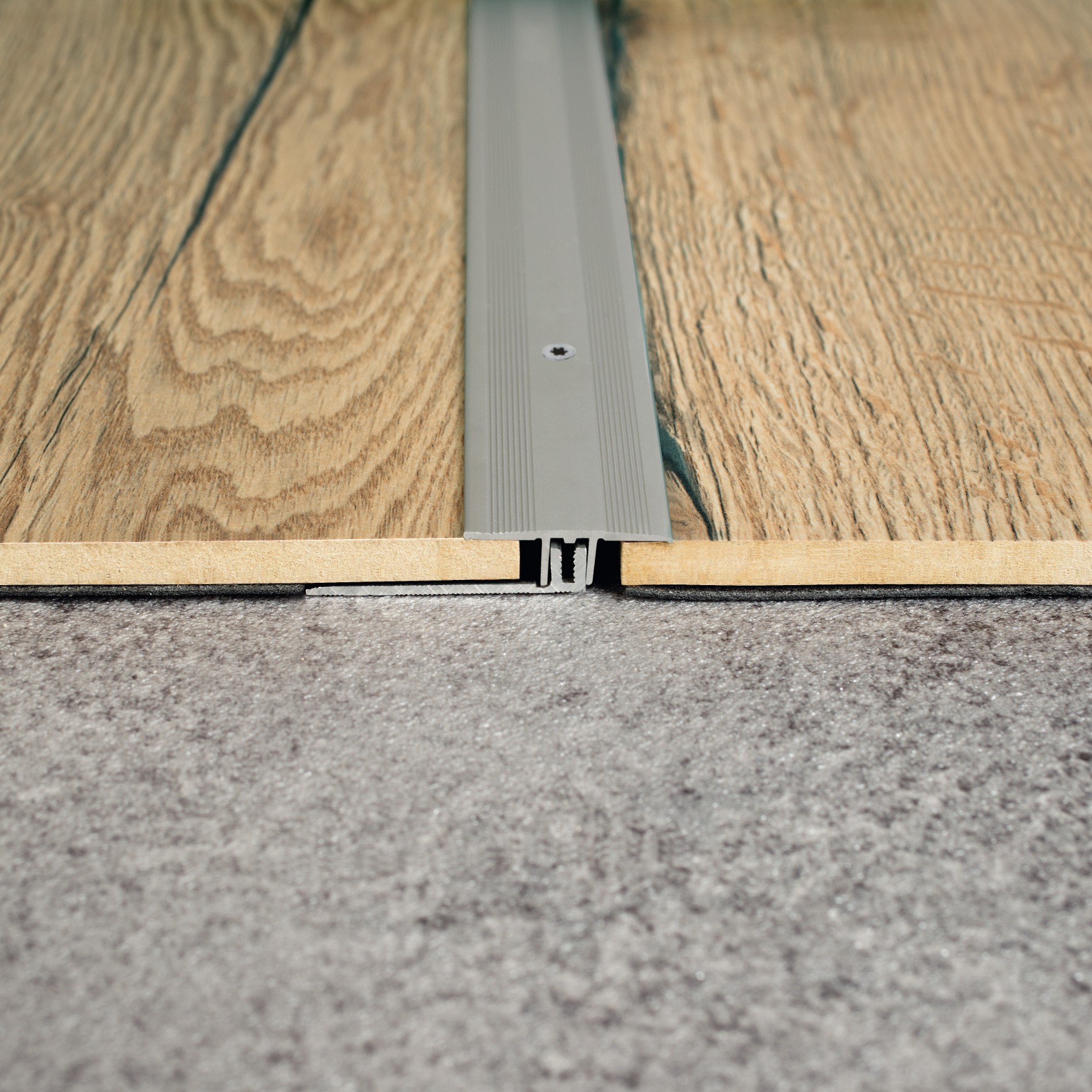 Profil AL prechodový Egger 34 mm, elox Striebro, 2,7 m, skrutkovací na podlahy hr. 6,5-16 mm, Typ 201 – 1483105