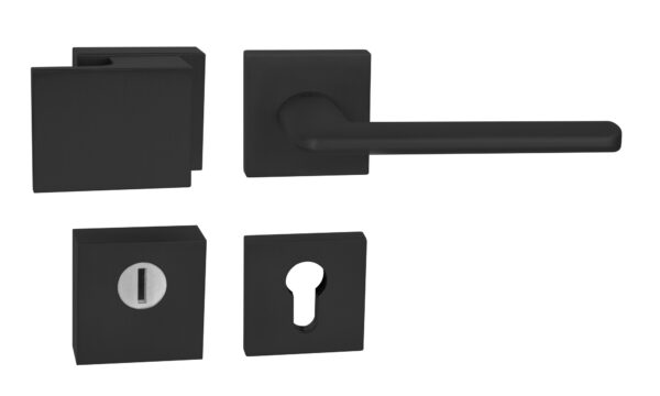 Bezpečnostná interiérová rozetová kľučka na vchodové a bezpečnostné dvere s hranatou rozetou s prekrytím cylindrickej vložky je vyrobená z materiálov vysokej kvality – zamak / oceľ a je povrchovo upravená. Hranatá rozeta má rozmery 52 mm x 52 mm (resp. 55 mm x 52 mm) a hrúbku 17 mm.