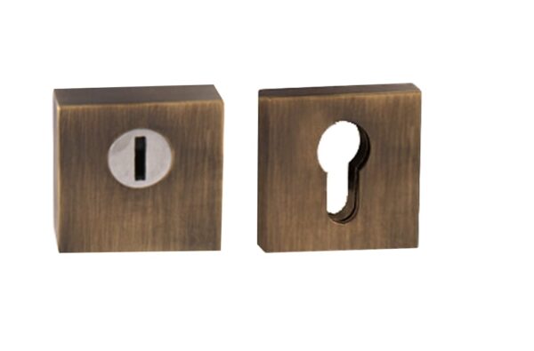 Bezpečnostná interiérová hranatá rozeta s prekrytím cylindrickej vložky je vyrobená z materiálov vysokej kvality – zamak / oceľ a je povrchovo upravená.