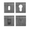 Hranatá rozeta je vyrobená z materiálov vysokej kvality – mosadz a je povrchovo upravená. Rozeta má rozmery 52 mm x 52 mm, hrúbku len 5 mm a hranatý otvor pre interiérový kľúč (BBQ), otvor pre cylindrickú vložku (PZ) alebo WC set s vmontovaným kľúčom.