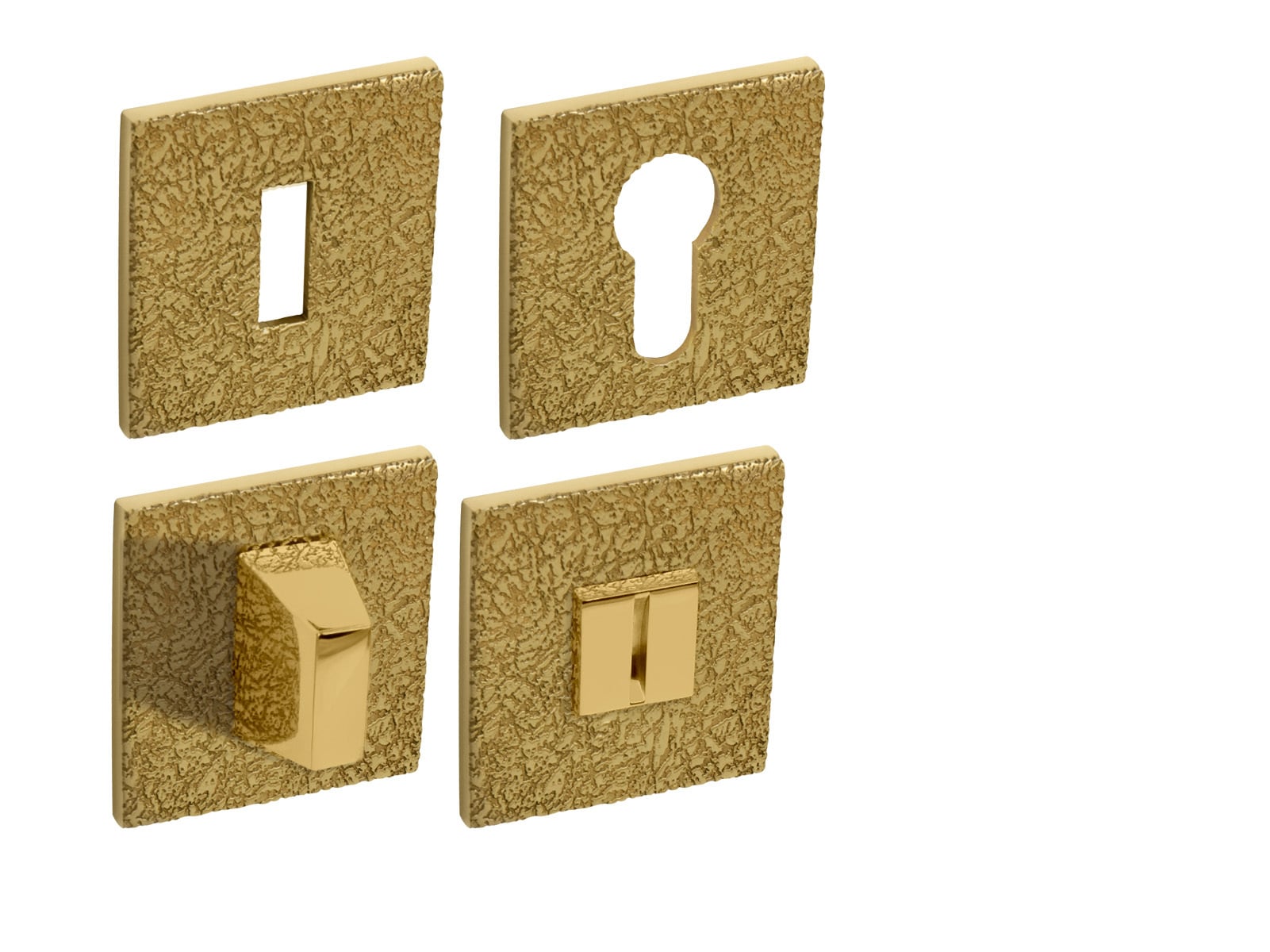 Hranatá rozeta je vyrobená z materiálov vysokej kvality – mosadz a je povrchovo upravená. Rozeta má rozmery 52 mm x 52 mm, hrúbku len 5 mm a hranatý otvor pre interiérový klúč (BBQ), otvor pre cylindrickú vložku (PZ) alebo WC set s vmontovaným kľúčom.